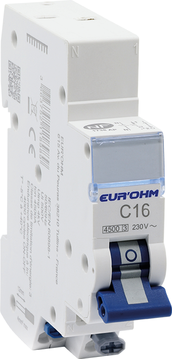 Disjoncteur 1P+N 16A courbe C connexion rapide/rapide 4,5kA NF
