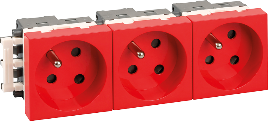 • Bloc de 3 prises françaises 16A 2P+T module 45x45mm rouge détrompée